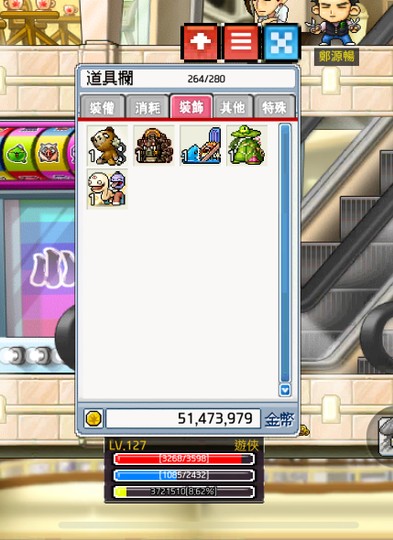 帳號內約還有1萬wc點數、450雪、楓幣5千w