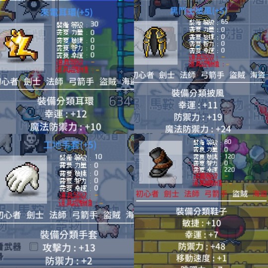 🔥 各職業 30級 | 🔪盜賊CP禮包 整套附水錢 3幸7敏帽子/8攻手套/8幸披風 6幸耳環/10幸套服 6敏10跳2速鞋/成品武器 | 680T |