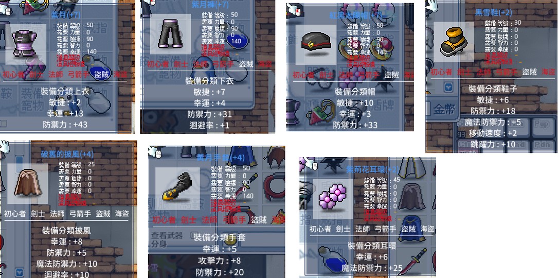 【盜賊30~50等8件套】帽子+上衣+下褲+手套+鞋子+耳環+武器 省去找裝時間