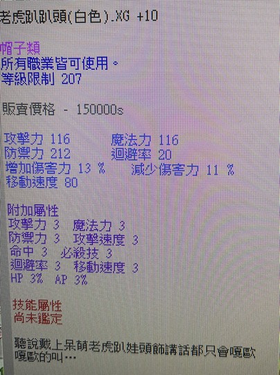 老虎趴趴頭白色XG+10卡屬(新手回鍋,刺客,槍手,增傷裝,龍裝,漆黑,異界)