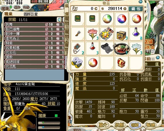 附上基本寵(有隻肥黃金龍) 雜物不清(一些練功用傳送羽等)