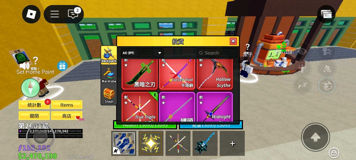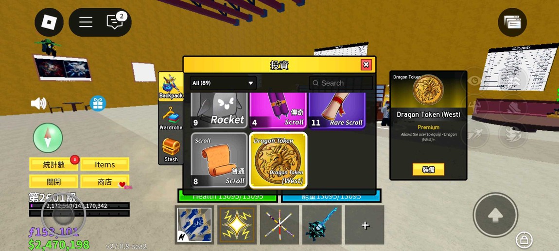 通行證除了果探都有 刀基本上都有而且等級都很高 果實也是都有覺醒了 除了鳳凰或最近更新的 bf基本上以前能解的都解了