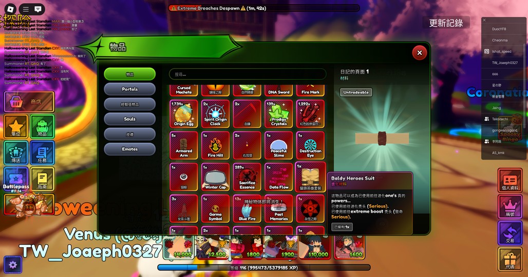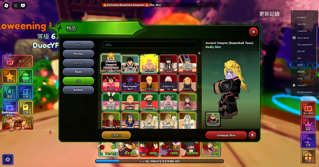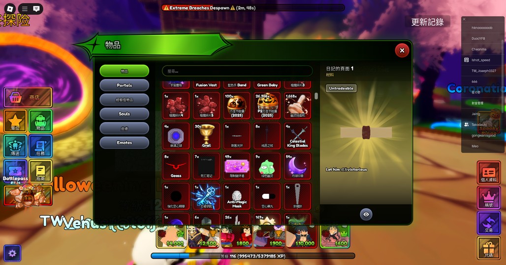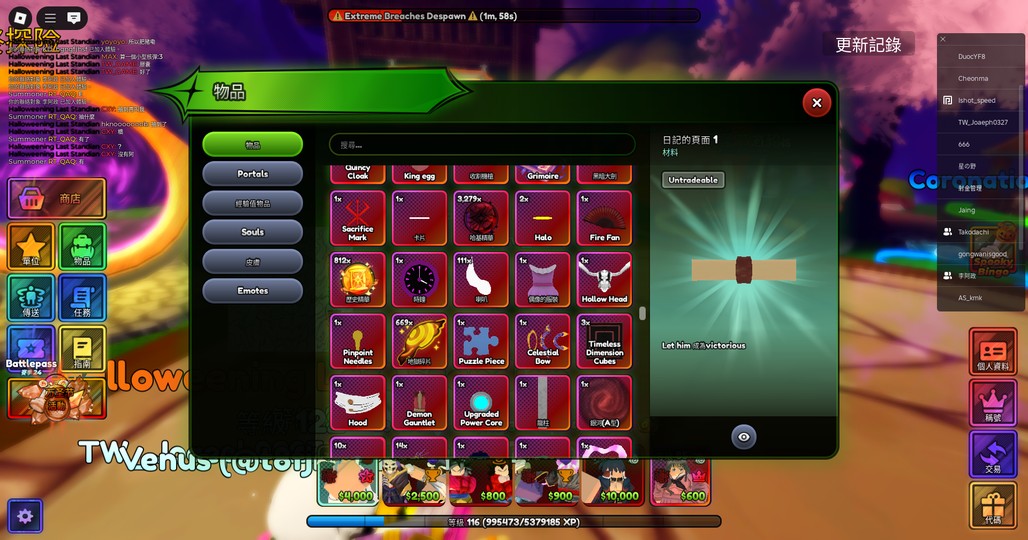 萬聖節膠囊1000 10塊 故障藥水一個2塊 需要都可以詢問 任何道具都有 新角色也都有 各式禮包