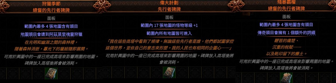 PoE2照耀地圖面板碑牌👌探險、譫妄、總督的先行者、裂痕、祭祀貢禮、魂靈狩獵