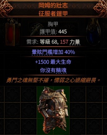 血甲PoE2流亡黯道2👌岡姆的壯志.征服者鎧甲 ( 最大生命增加1500 )