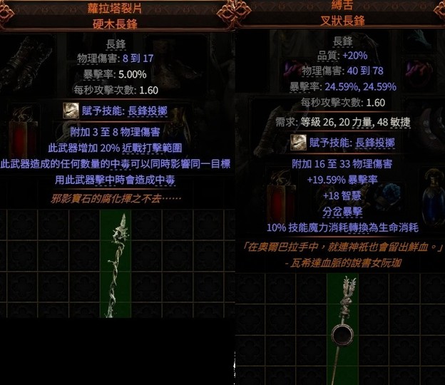 PoE2👌傳奇→蘿拉塔裂片.硬木長鋒中毒、縛舌.叉狀長鋒投擲(分岔暴擊 )