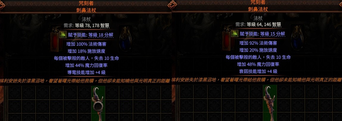 PoE2分解👌咒刻者.刺鼻法杖導電、衰弱+4技能寶石等級 ( 魔力回復率 )