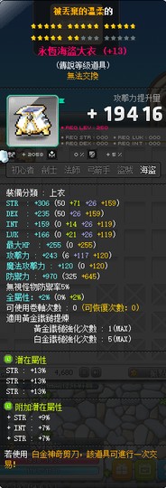 【永恆海盜大衣】雙傳22星39%力永恆海盜大衣 附加97力大雙 白5全b~