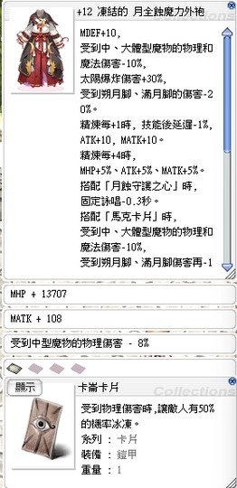 +12卡崙 月全蝕魔力外袍 (HP13707 MATK+108 抗中物8%)