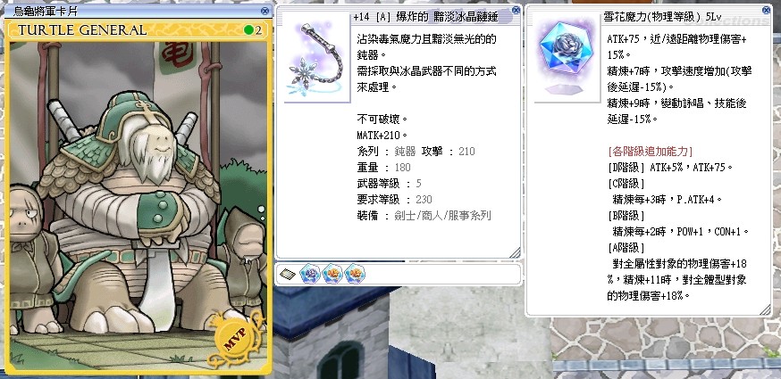 +14 A階 烏龜將軍卡片 黯淡冰晶鏈錘 【火焰彈*2、物理5LV】