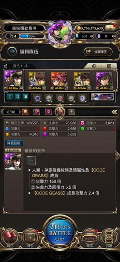角色搭配武裝都很齊全,最新最強黑金奧丁及Re0呂布三刀流、劍聖反擊隊(無腦)、年黑金帝鴻無腦炸隊、魯路修機體隊等足以通關100%,並且版本強力卡片(黑金/合作)都有甚至複製,還有眾多絕版卡,主線幾乎沒什麼打,都是課金抽卡,通關劇本無壓力!