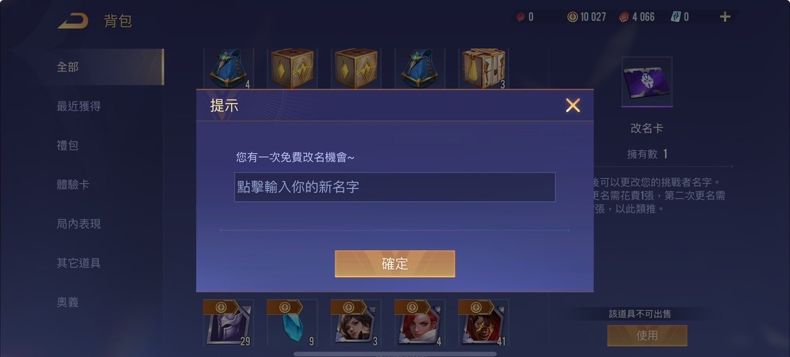 ✨金幣10027 更名卡*1✨