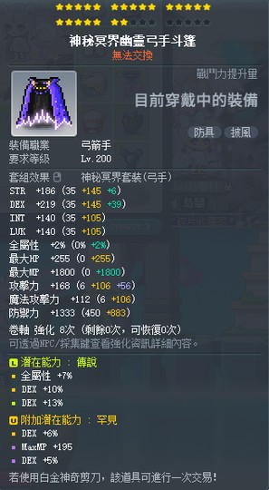 神秘披風 22星 +7*8 30% 敏(10全) 附加 罕見 6敏+5敏 2300t 售出