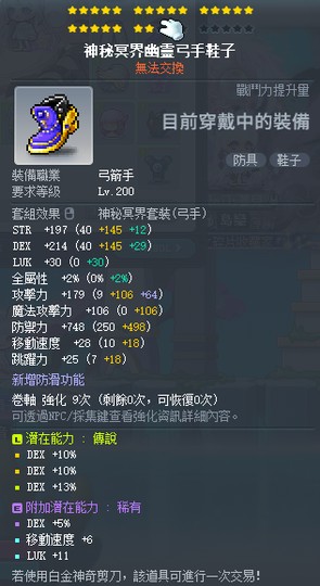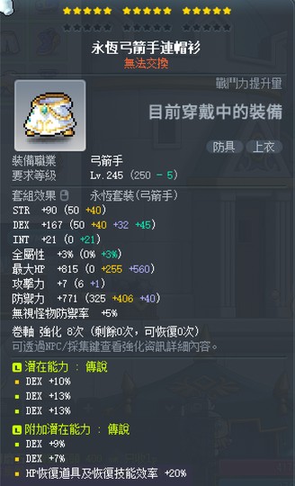 永恆弓箭手上衣 無星無卷 36% 敏 附加 傳說 9敏+7敏 5200t