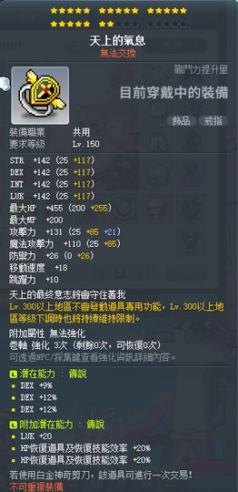 天上 22星 無卷 36% 敏(頂%) 附加 傳說 8%敏+5%敏 +1敏 13000t