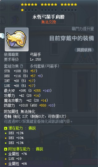 永恆弓箭手肩膀 無星無卷 36% 敏 附加 傳說7敏+6敏 5500t