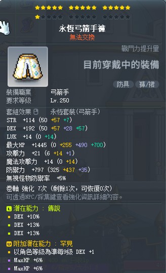 永恆弓箭手褲子 無星無卷 36% 敏 附加 罕見 爛潛 2200t 售出
