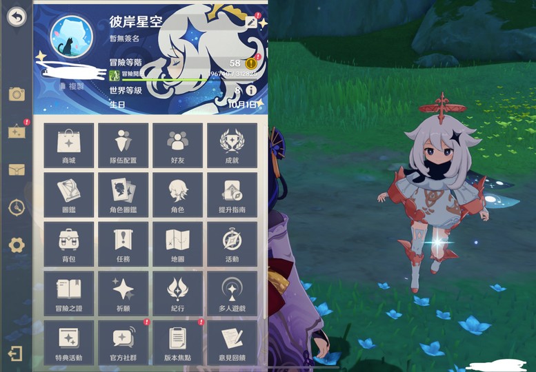 低探索度,主線只做完稻妻,跟初始帳差不多,蒙德探索度平均95%,璃月探索度平均70%,稻妻探索度平均45%,須彌探索度平均30%,楓丹探索度平均10%,那塔探索度平均10%。