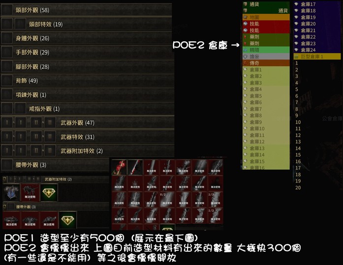有限定造型.絕版造型 都可以自由搭配 儲值非常多 可以遊玩POE2