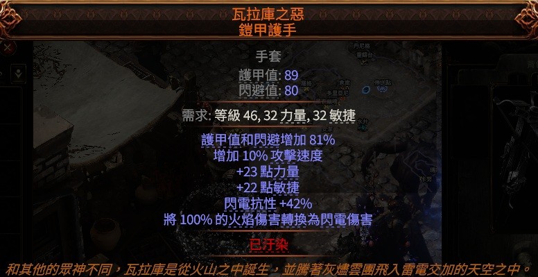 【手套、瓦拉庫之惡】鎧甲護手 頂10%攻擊速度 42閃電抗 雙洞 遊俠銳眼十字弓孥 傳奇 瓦拉庫之