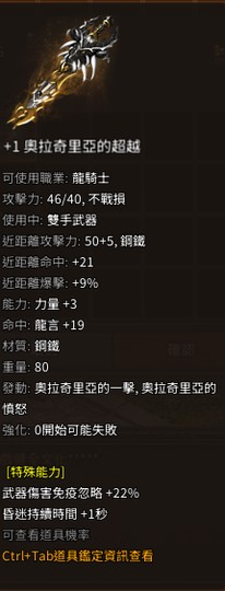賣絕頂龍騎士神武+1奧拉奇里亞的超越 +1龍騎士神武