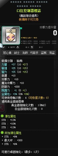 【口紅控制器標誌】雙傳口紅臉飾/主潛36%力/附加傳說雙排(8%+6%)力/漆黑飾品