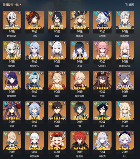 【女、70等、55金角、33金專】退坑出售 米遊三合一 角色高練度 工作忙碌退坑 有興趣可出價