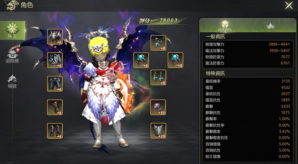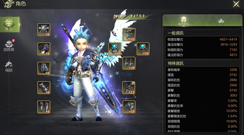 3.4 劍聖 以物攻為主 7+3+2冰封特武 4a飾品( 2物 項鍊戒指 2魔耳環戒指 )