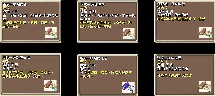 【鼠券】:可傳送到4種老鼠的1等點,通常為練功練寵或解任務省路程的用途,一張即可傳送整隊。