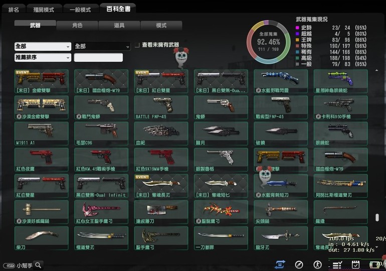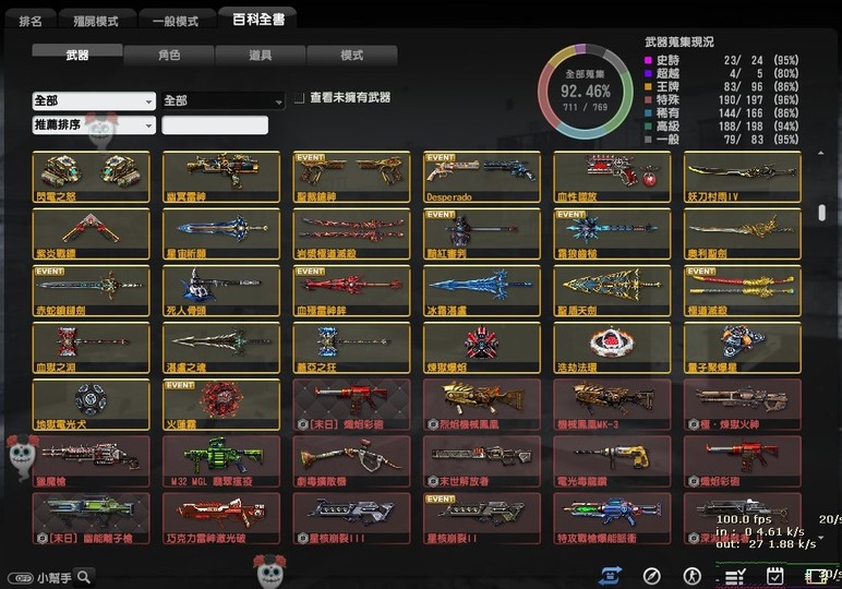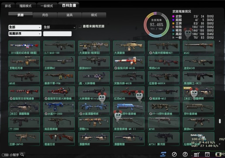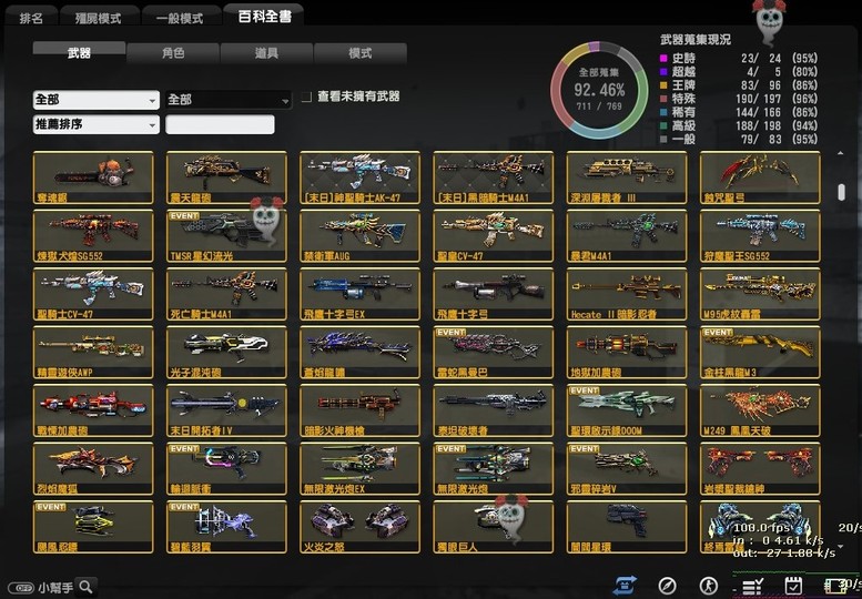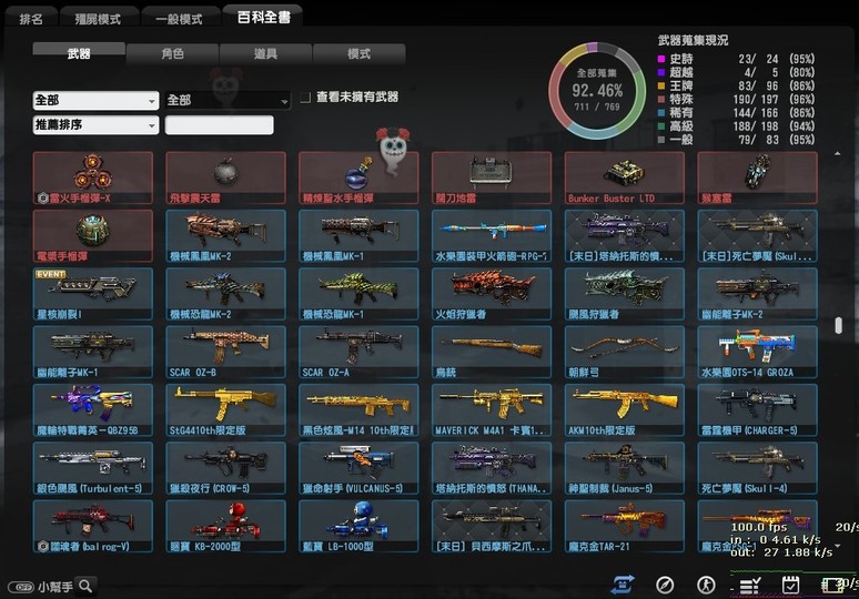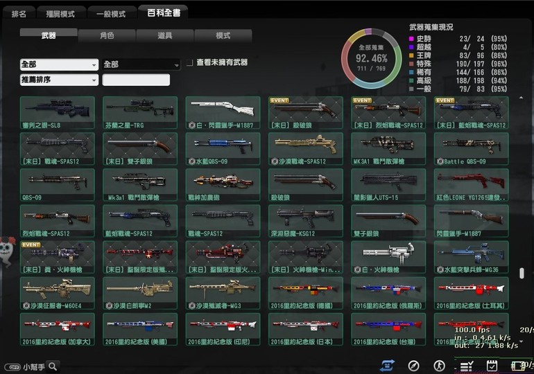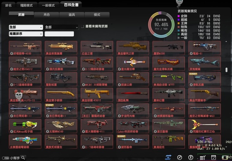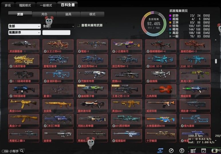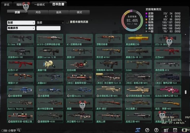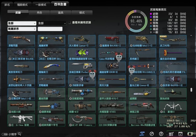 【23史詩武器、83王牌武器、65王牌角色】水藍稱全改 全年槍全王牌角全賽季 武器蒐集92%(11/1更新)