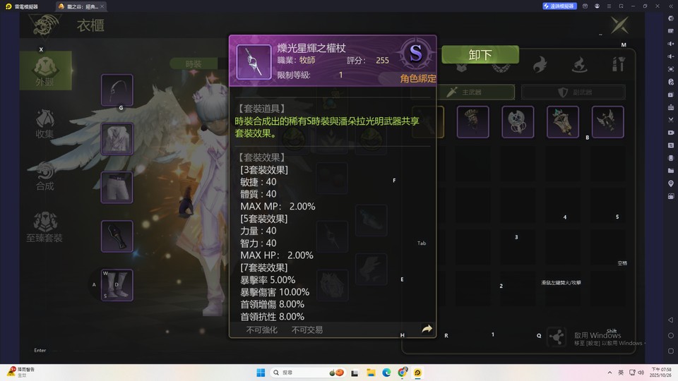 魔島 11.光明套裝(頭/衣服/褲子/手套/鞋子/主武器/副武器)X7
