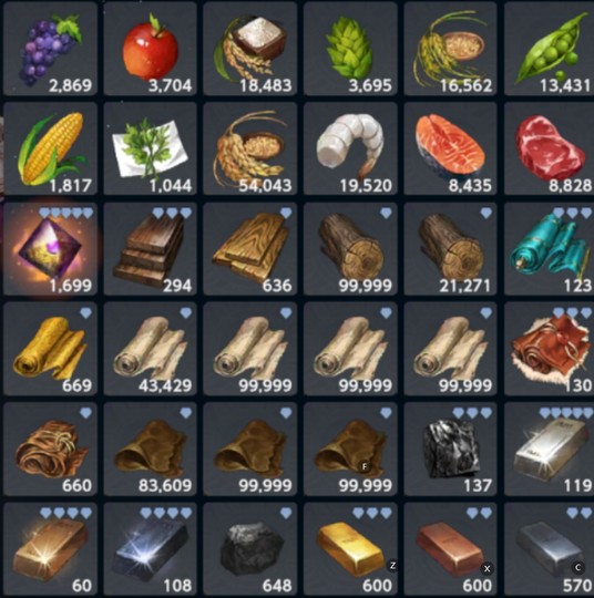 木材、金礦、聖石、眼淚、古水皆為稀缺資源