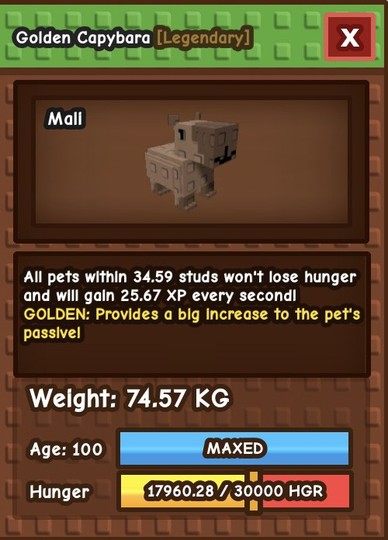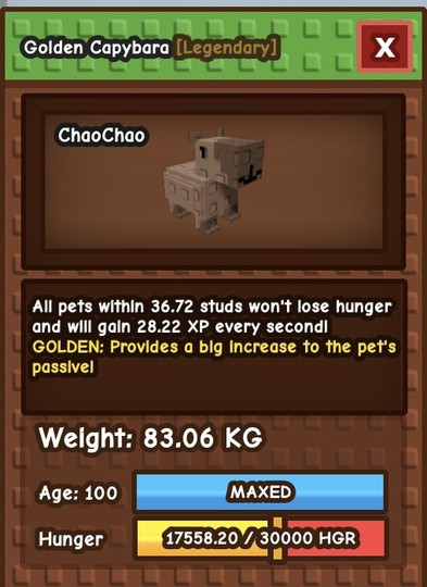 培養花園巨大寵物:巨大彩虹.黃金.MEGA水豚/卡比巴拉