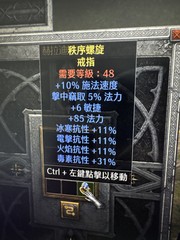 戒指10施法,5吸法,6敏捷,85法力,11全抗,31毒抗