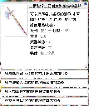三級強悍頂級斧錘 風屬46%中型26%人類49% 無視魚22%