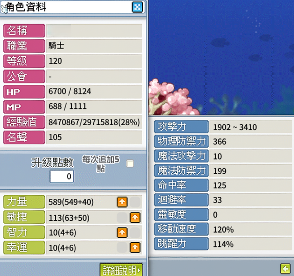 【120等、騎士_聖騎士】乾表3410 洗血15瓶全領 眼鏡9附 持續升級