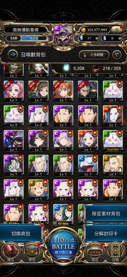 主線可以說根本沒打(有很多石頭可以挖),有Cp值非常高(很強)的Re0合作全套及眾生平等炮的帝鴻軒轅和最新的黑金奧丁,可以說潛力十足!