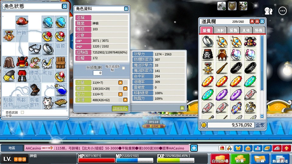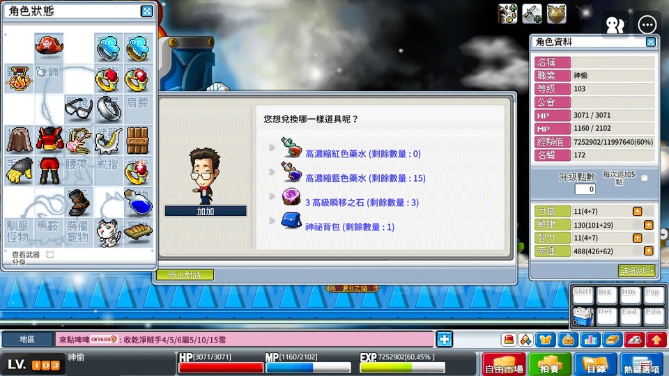 【103等、神偷_暗影神偷】神偷 98AD狗刀 金勾帽 眼鏡 寵物123技 造型卷 端午椅 洗血水15罐已喝