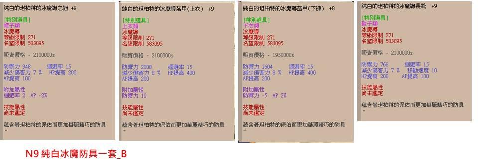 防具_N9純白冰魔一套_有鑑定_參考冰杖艾希聖光真銀帝單遠征