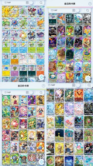 卡片7000張 只有微微課過金塊跟一個月的通行證 個版本卡片都算很齊全 沒有組不起來的牌組 活動全部都有跟到 周邊物品牌組護套、硬幣、對戰桌墊、PROMO卡幾乎都有了 除特級護照跟某張小卡沒開到 小全圖都有拿到