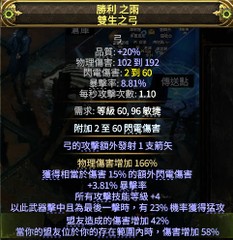 【弓、銳眼】◎暴擊流必備◎高暴率◎額外箭矢◎技能+4◎高物傷+電傷◎刷圖用猛攻◎價格可議◎