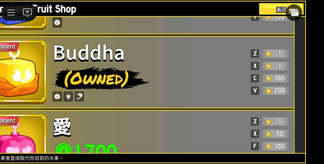 1番茄2骨花1秋蘋果3荊棘公主2大象耳朵1化石燈,帳號內虛擬人偶有多R幣購買,blox fruit有佛門永久果