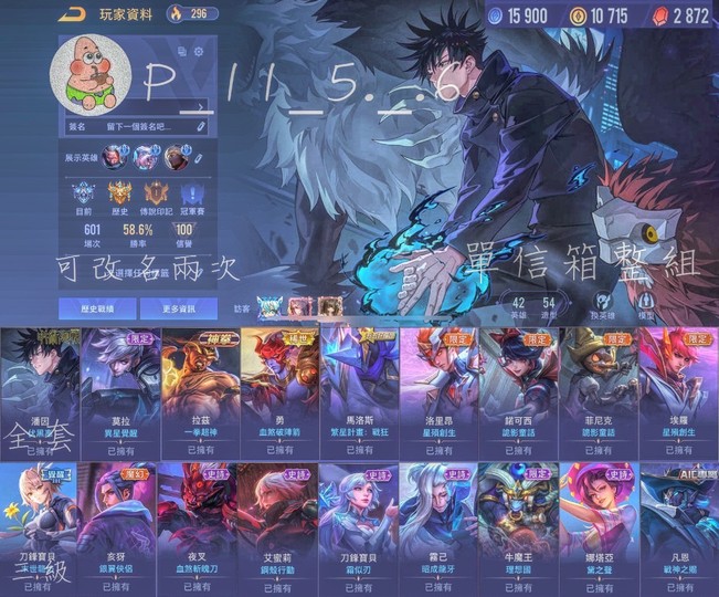 【G帳手機未綁信箱可改、鑽石、V6、42英、54造】潘因伏黑惠全套 莫拉異星 拉茲一拳 馬洛斯繁星