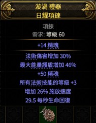 【項鏈、極致法術技能+3項鍊】【冰法肝王】日耀項鍊 - 64精魂、30法傷、46%能盾、法術技能+3、26施速