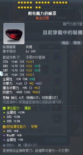 【附有魔力的眼罩】22星 33%敏 附加罕見9%敏 全V捲 白2