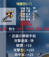 【90等+7坲羅劍 41極高屬命中武器】16敏/105攻/21命中
