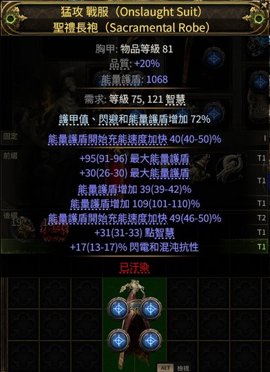 【胸甲、破千ES 4洞長袍】全服第一1068ES 4洞聖禮長袍