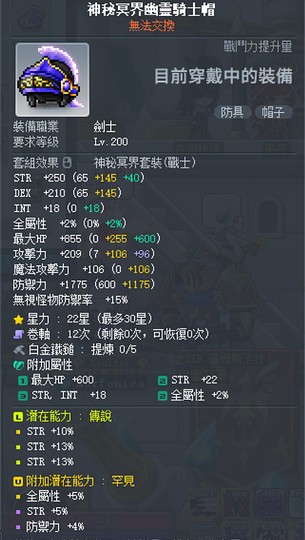 【神秘冥界幽靈騎士帽】22星全V36%力劍士神秘帽子附加10力罕雙屬排帽 退谷%力 次頂%力