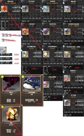 輪燒3W 黑E1200 副武8000 彩虹*2 1:1500 苦行1200 內面800 幽暗500 露耳1200