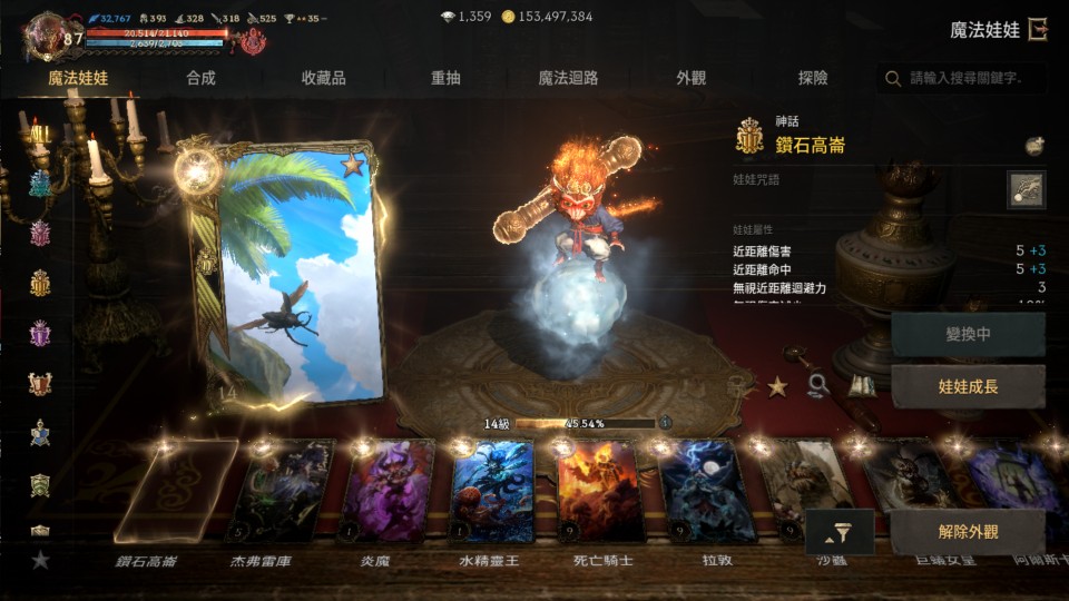 4金娃:(傑弗雷庫、鑽石高崙、水精靈王、炎魔):鑽石高崙LV14